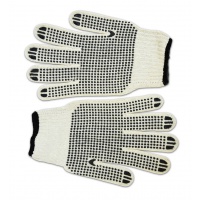 Рукавички текстильні, мають точкове противосковзьке ПВХ-нанесення нанесення з внутрішньої та з зовнішньої сторони долонь. Еластичний, пружний манжет. Розмір l. Призначення: захист рук при виконанні монтажних, побутових та садових робіт.