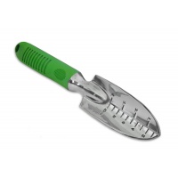 Лопатка виготовлена з високоякісного алюмінію з нікельованим покриттям. На робочій поверхні лопатки знаходиться шкала вимірювання глибини. Призначена для посадки серед щільно зростаючих рослин, для посадок розсади, квітів в саду і городі. Ергономічна прогумована ручка забезпечує зручний захват для руки.