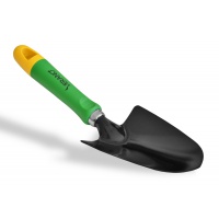 Виготовлена з вуглецевої сталі, покрита епоксидною смолою стійкою до корозії, механічних пошкоджень і перешкоджає налипанию землі. Волога грунт не прилипає до робочої поверхні. Рукоятка з ударопрочной пластмаси прекрасно підходить для посадки і пересадки квітів і розсади.