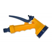 Корпус з ABS-пластику, ергономічна ручка з заглибинами під пальці і з фікастором безпреривного поливу. 5 режимів поливу: жорсткий, слабкий, розпил, конус, пласкийи струмінь.