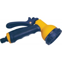 Корпус з ABS-пластику, ергономічна прогумована ручка з заглибинами під пальці і з фікастором безпреривного поливу. 7 режимів поливу: сильний, конус, центр, плаский, душ, розпил, слабий струмінь.