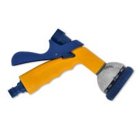 Металевий корпус з пластиковими елементами,ергономічна прогумована ручка з заглибинами під пальці і з фікастором безпреривного поливу. 7 режимів поливу: сильний, конус, центр, плаский, душ, розпил, слабкий струмінь.