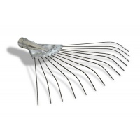 Зуби грабель виготовлені з пружного дроту, пофарбовані. Застосовуються для прибирання газонів.