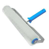 Пластмасовий ролик з голками, ручка d 8мм. Використовується при виготовленні бетонних наливних підлог і нівелюючих мас, допомагає уникнути скупчення повітря під верхнім шаром маси, завдяки чому покриття захищене від щербинок і виїмок.
