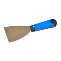 Шпательна лопатка сталева з нержавіючим покриттям, тип "Профі" - профільоване полотно з нержавіючої сталі. Двокомпонентна ергономічна ручка з отвором для підвішування. Служить для нанесення шпаклювальних сумышей при оздоблювальних роботах. Можна використовувати для видалення забруднень з поверхонь перед початком малярних робіт.