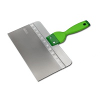 Шпатель зі зручною прогумованою рукояткою ергономічної форми. Міцна конструкція шпателя. Сталеве нержавіюче полотно збільшено до висоти 80мм і надійно закріплене. Використовуються при проведенні штукатурних робіт для нанесення і розрівнювання будівельних розчинів по поверхні.