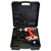 Дриль акумуляторний (Ni-Cd). Призначений для свердлення отворів в матеріалі з деревини, пластика, метала. Можливе використання в якості викрутки. 24 режима крутного моменту. Зручний швидкозажимний патрон типу Сhuck 3/8 - 24 UNF, дозволяє закріпити свердла діаметром від 0,8 до 10,0 мм. Для максимально точного свердлення, на задній стінці корпуса розміщено спиртовий глазок. Інструмент має покриття Soft Grip, яке запобігає зісковзуванню руки і гладке на дотик. Дриль комплектується зарядним пристроєм, батареєю, двосторонньою викрутною бітою.