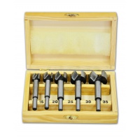 Набір фрез для деревини (5 шт. ). Використовуются для свердлення глухих та торцьових отворів у деревині. Фрези виготовлені з високолегованої хромістої сталі, що гарантує максимальну міцність фрези та високу продуктивність свердлення. Фреза має центруючий накінечник, три ружичих кромки, циліндричний хвостовик.