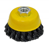 Щітка "Чашка", стальна кручена, М14. Для КШМ. Використовується для очищення металевих поверхонь великої площини від іржі, лакофарбових покриттів тощо. Сталевий дріт (0,5 мм) міцно закручеий у витки і надійно закріплений в обоймі, що забезпечує тривалий ресурс роботи.