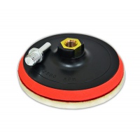Диск з липучкою для дриля та КШМ. Диск з липучкою для шліфування застосовується для обробки поверхонь з металу, деревини, пластику тощо. Додатковий шар м'якої гуми згладжує вплив нерівностей поверхні на інструмент. Основа диску з липучки для використання з абразивними кругами. Комплектується з перехідником для дриля.