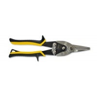 Ножиці по металу з прямим різом, Cr-Mo, виготовлені зі сталі, легованої хромом і молібденом. Тип обробки - штампування. Ріжучі поверхні проходять індукційне зміцнення до 60-62HRC. Мають фіксатор. Ергономічні двокомпонентні ручки. Застосовуються для різання холоднокатаної сталі товщиною до 1,2 мм та нержавіючої сталі до 0,7 мм.