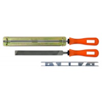 У набір входить: 1.Планка з круглим напилком; 2.Обпилювальний калібр(шаблон); 3.Фірмовий плаский напилок. Призначається для заточки ланцюгових пил.