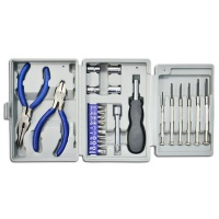 Набір інструменту для точних робіт. До набору входять: 6 годинникових викруток (SL, PH), бокорізи, тонкогубці, пінцет, головки шестигранні - 4 шт., викрутка-тримач, подовжувач, біти - 9 шт. (SL5, SL6, PH1, PH2, PZ1, PZ2, T10, T15, T20), адаптер. Біти та головки виготовлені зі сталі С45. Застосовується для виконання дрібних, точних слюсарних та монтажних робіт.