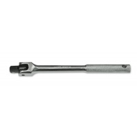 Вороток з карданом з міцної сталі Cr-V. Ковка та гартування. Хромове антикорозійне покриття. Рифлена ручка проти ковзання. Кардан дозволяє регулювати кут нахилу воротка по відношенню до різьбового з’єднання. Кульковий фіксуючий механізм надійно утримує головку при роботі.