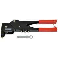 Заклепник металевий застосовується з алюмінієвими заклепками для скріплення листів металу, пластику, фанери та ін. Корпус виготовлений зі сталі та має антикорозійне покриття. До комплекту входять 4 змінні головки (2,4 мм, 3,2 мм, 4 мм, 4,8 мм) та ключ для зміни головок.