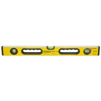 Рівень алюмінієвий. Три вічка (2 для вимірювання в площині під кутом 0 і 90 градусів і один поворотний на 360 градусів). Рівень посилений ребрами жорсткості. Похибка - 0,043мм.